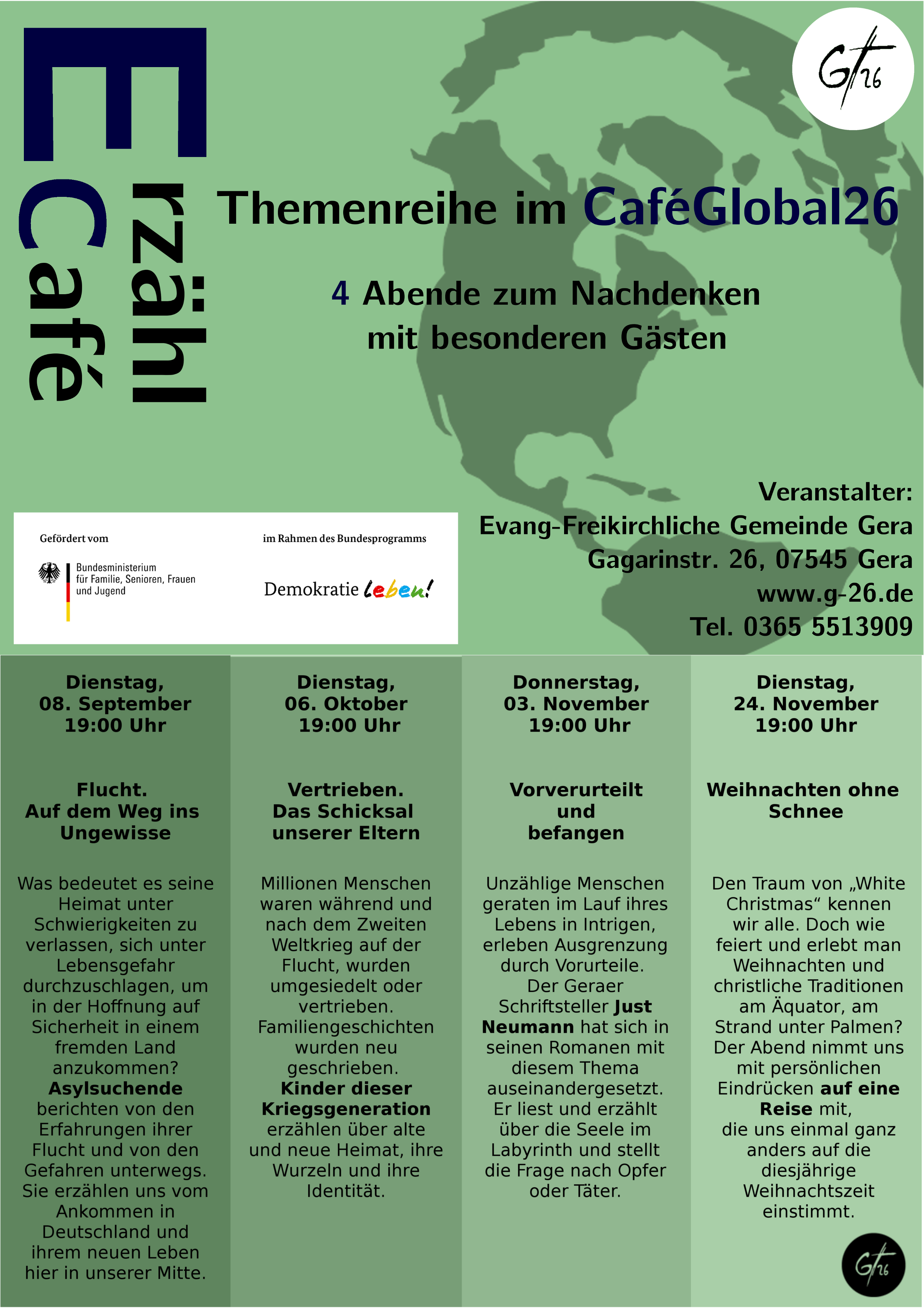 Die Evangelische Freikirchliche Gemeine Gera „G26“ lädt an vier Abenden zum Nachdenken ins Café Global ein!