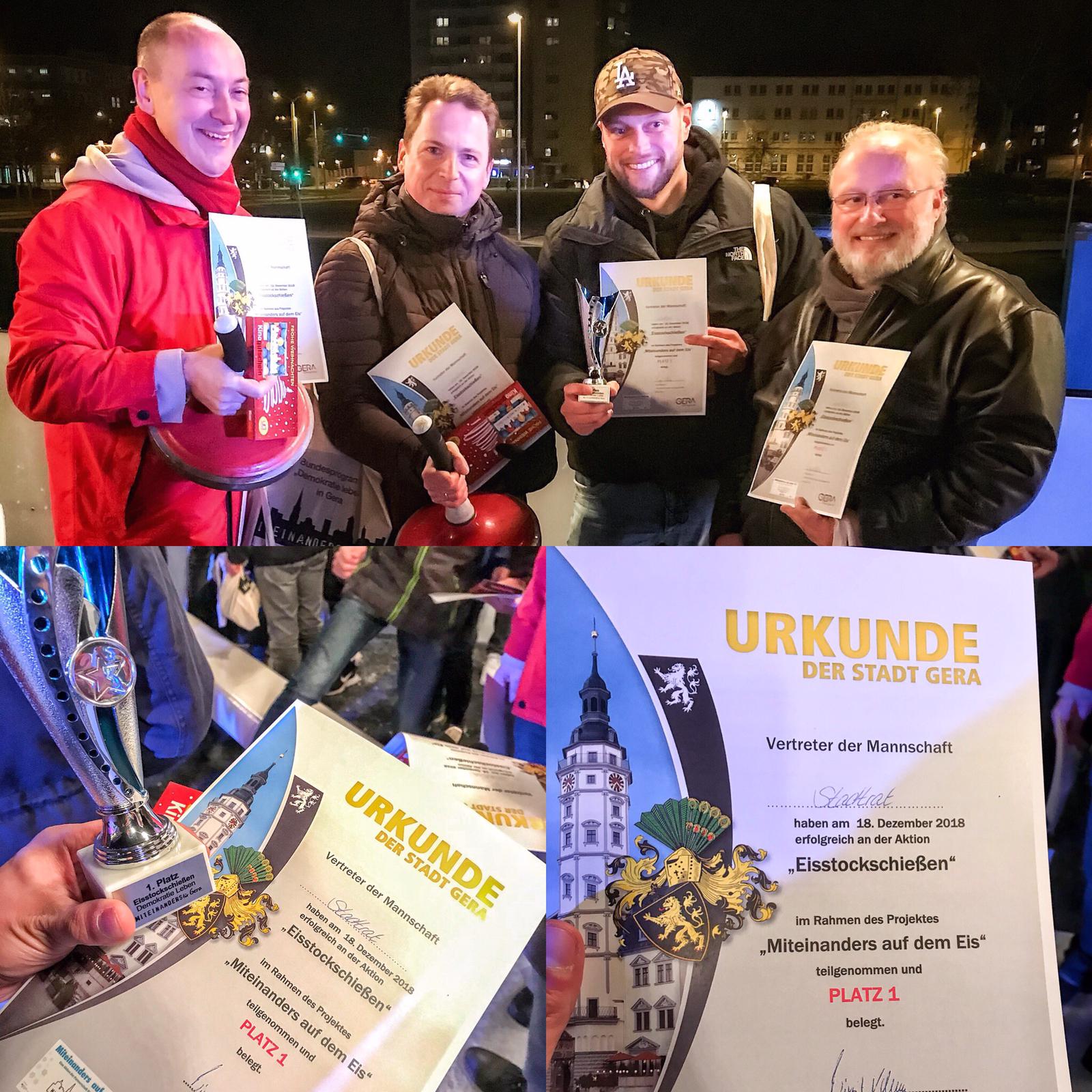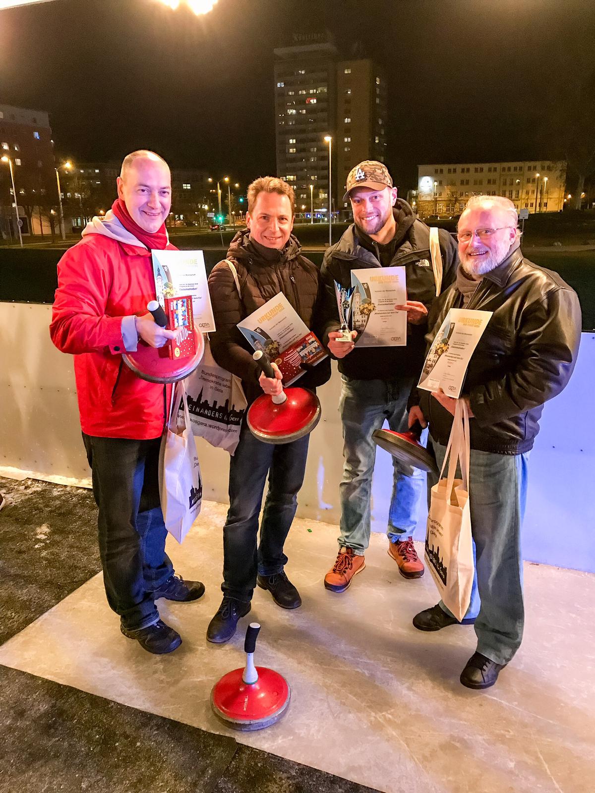 Am 18.12. fand das Finale zum Eistockschieß-Turnier auf der Eislaufbahn vor dem Kultur-und Kongresszentrum Gera statt. Der Rollschnelllauf (Bereich Sport), der Jugendclub C-One (Bereich Jugendarbeit), der Stadtrat (gemischte Mannschaft der Politik) und die Debschwitzer Schule (Bereich Schulen) sind die Mannschaften, die sich für das Finale qualifizierten.